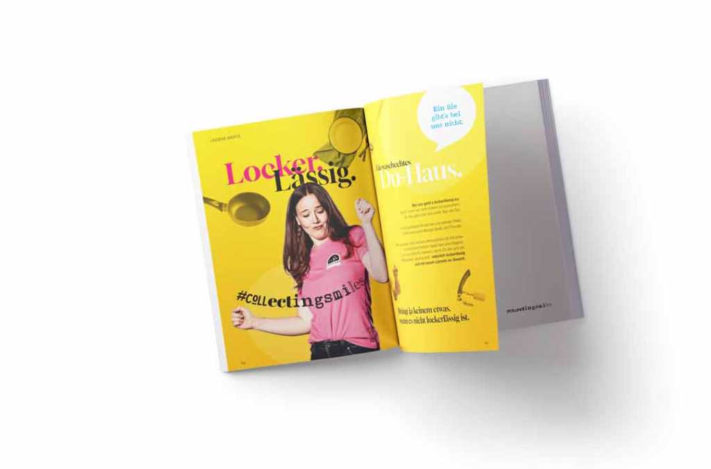 Für die Leading Family Hotels „Löwe & Bär“ wurde eine komplette Employer-Branding-Kampagne konzipiert. Das Ziel? Der Arbeitgebermarke Attraktivität zu verleihen, das bestehende Team zu halten und neues Personal anzusprechen. Nun galt es, die nuanciert herausgearbeitete Markenbotschaft zu visualisieren, die Inhalte für derzeitige und künftige Angestellte gut aufbereitet zu präsentieren und die Kernelemente in einem CD-Manual zu bündeln. Die Ergebnisse zeigen sich eindrücklich u. a. im designten Mitarbeiter-Notizbuch – der Slogan „Collecting Smiles“ ist Konzept und findet sich sowohl in der emotional ausdrucksstarken, witzigen und teils überzogenen Bildsprache als auch im Inhalt wieder. Diese Imageseiten zaubern neben dem übersichtlichen Kalendarium, den motivierenden Inhaltsseiten zur Markenpositionierung und Goodies wie Bildungsgutschein und Feedbackbogen ein Lächeln in die Gesichter der Belegschaft. Gemeinsam mit anderen gebrandeten Artikeln – wie Sonnenbrillen, Trinkflaschen und T-Shirts – ein tolles Geschenk. Design und Wording definieren sich als positiv motivierend, pfiffig-bunt und spritzig sowie gefühlsbetont und selbstironisch.